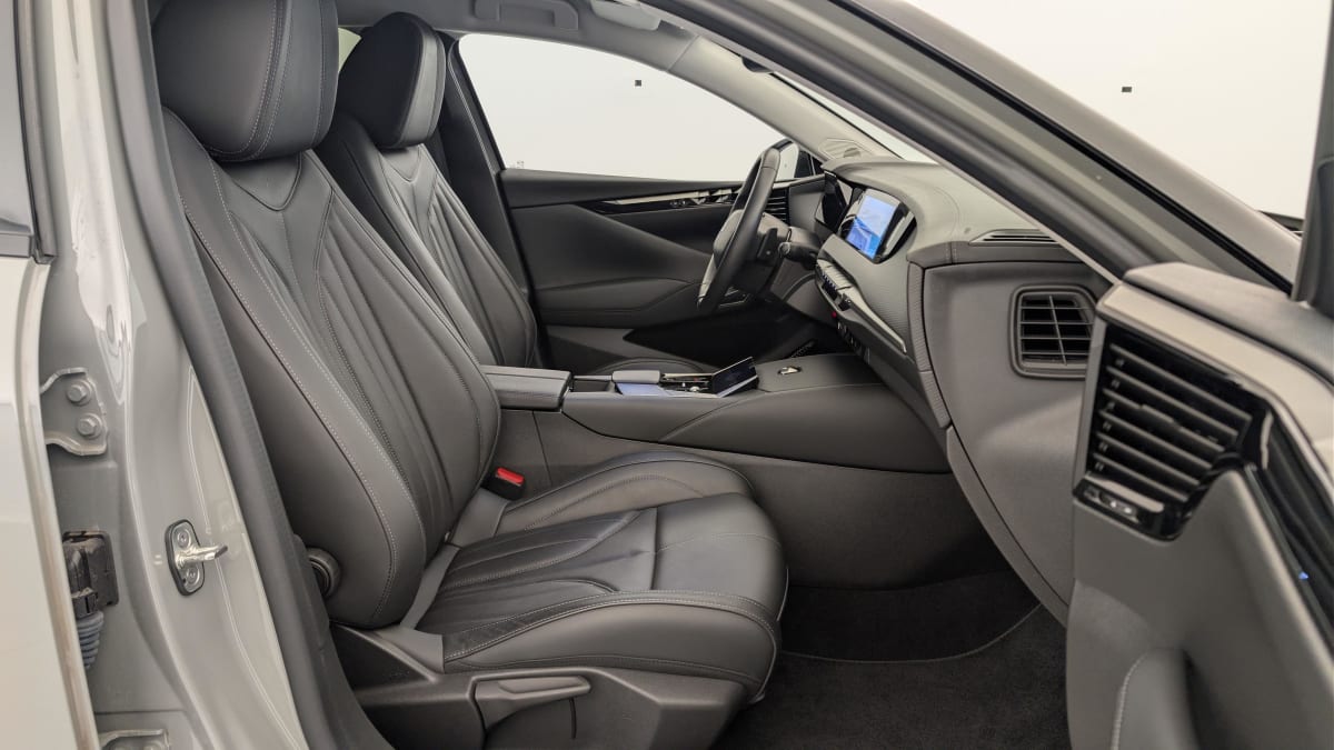 intérieur cuir grainé noir basalte et toile ds : ciel de pavillon clair décors de panneaux de porte chrome guilloché volant en cuir fleur mistral console centrale en toile ds mistral planche de bord en toile ds noir basalte façon écaille panneaux de portes en toile ds noir basalte façon écaille sellerie en cuir grainé noir basalte et toile ds