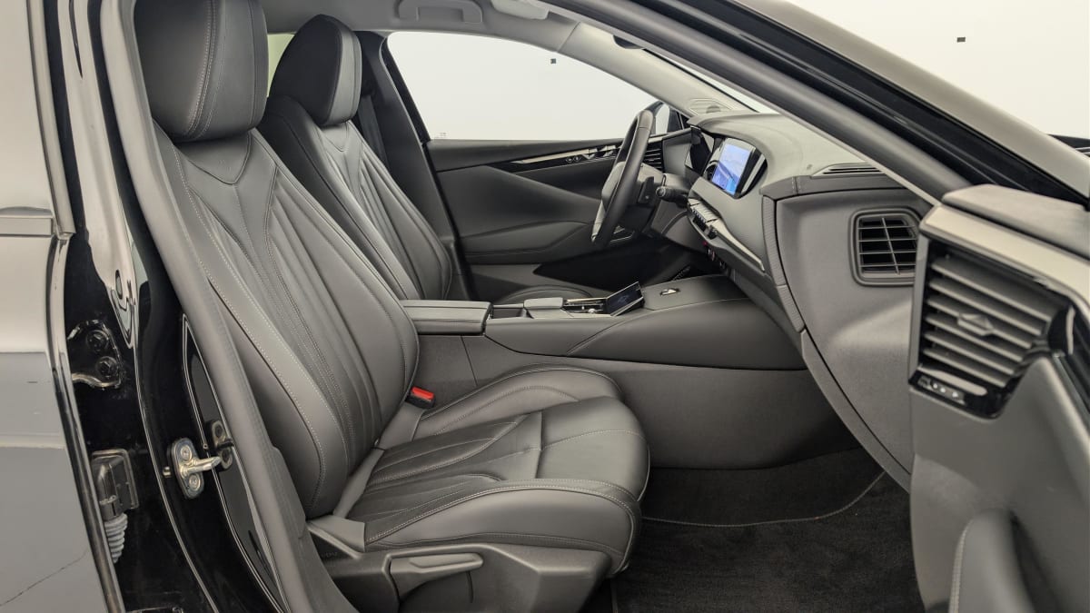 intérieur cuir grainé noir basalte et toile ds : ciel de pavillon clair décors de panneaux de porte chrome guilloché volant en cuir fleur mistral console centrale en toile ds mistral planche de bord en toile ds noir basalte façon écaille panneaux de portes en toile ds noir basalte façon écaille sellerie en cuir grainé noir basalte et toile ds