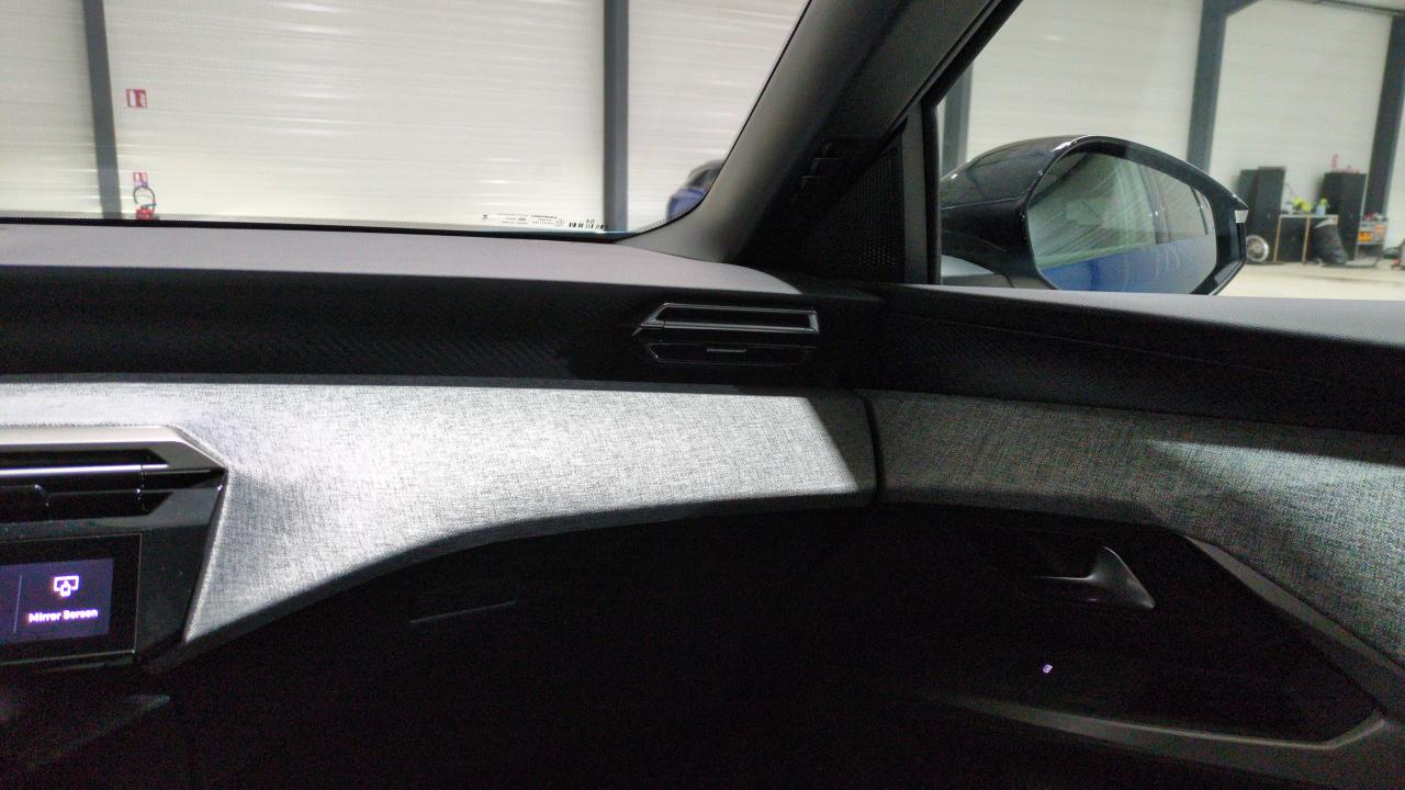 eléments de style intérieure : planche de bord moussée avec décor tissu rimini chiné et alcôve graphène