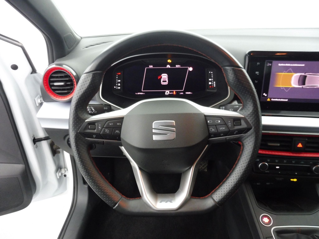 volant sport multifonctions à méplat en cuir nappa perforé avec surpiqûres rouges et logo fr